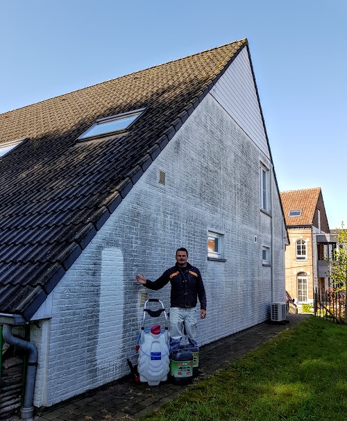 Dakontmossing - dakhydrofuge, gekleurde waterafstotende dakverf - gevelreiniging - reiniging van terrassen (klinkers, blauwe steen) - reiniging van zonnepanelen - reiniging van dakgoten - behandeling van dakconstructie.